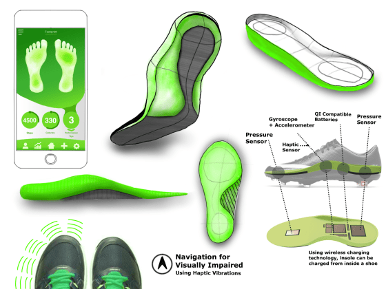 Team project to design smart insoles that protected athletes from injury while providing haptic guidance.